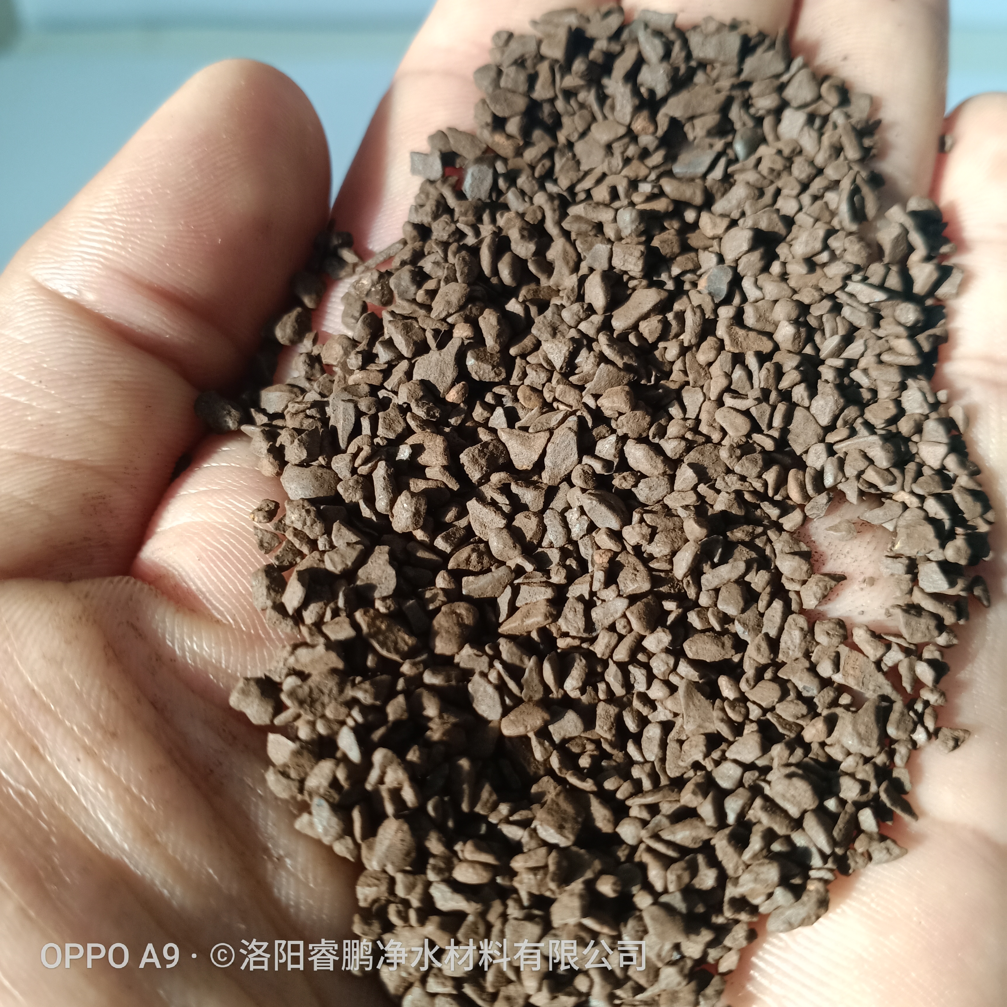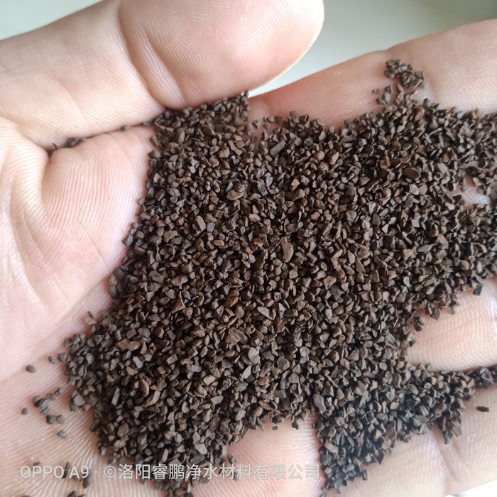 洛阳睿鹏净水材料有限公司采用晶粒致密、机械强度大、化学活性强、不易破碎、不溶于水的天然锰矿砂。经水洗打磨除杂、破碎、干燥、磁选、筛分、除尘等工艺加工成的食品级除铁除锰用锰砂滤料。外观黑褐色,近圆形,主要成份是二氧化锰,含量在35%-45%之间。具有良好的除铁、除锰性能,是地下水和工业用水含铁离子和锰离子进行除铁、除锰处理的必备产品。