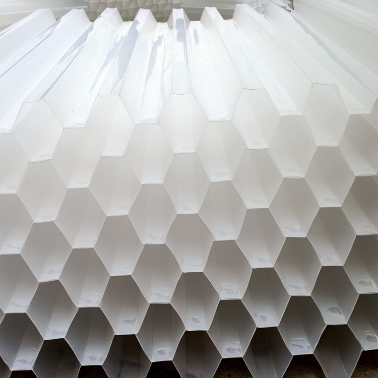 蜂窝斜管(斜板)填料又称(六角形蜂窝斜管填料) 料采用改性乙丙共聚塑料为材料,经红外线恒温机械热拉成六角管状,然后焊接成一个整体,再进行安装。主要用于工业污水,生活用水进水口的除砂沉淀,水的隔油,以及尾矿处理。