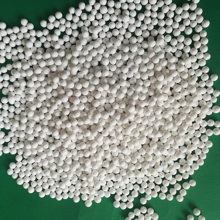 活性氧化铝是由X-P氧化铝粉精加工而成。外观为白色球状颗粒。具有表面积大,活性好,吸附性能好,机械强度大,热稳定性好,表面光滑,粒度均匀,吸湿性能好,吸水后不胀不裂保持原状,无毒,无嗅,不溶于水,乙醇等优点。产品各项指标均达到【HG/T3927-2007】标准要求。在石油化工、化肥工业中,广泛用作催化剂、催化剂载体、活性氧化铝又具有吸附特性,因而用作气体和液体的干燥剂、气体净化的吸附剂、饮水除氟剂、工业污水的颜色和气味消除剂等。