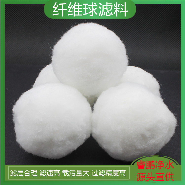 纤维(改性纤维)球滤料是由进口纤维丝(改性纤维丝)扎结而成的球形滤料,外观:纤维球为白色球状颗粒;改性纤维球为浅黄色球状颗粒。它与传统滤料相比,具有弹性效果好,滤速高,比表面积大,载污量大,过滤精度高,不上浮水面,空隙大,工作周期长,水头损失小等优点。